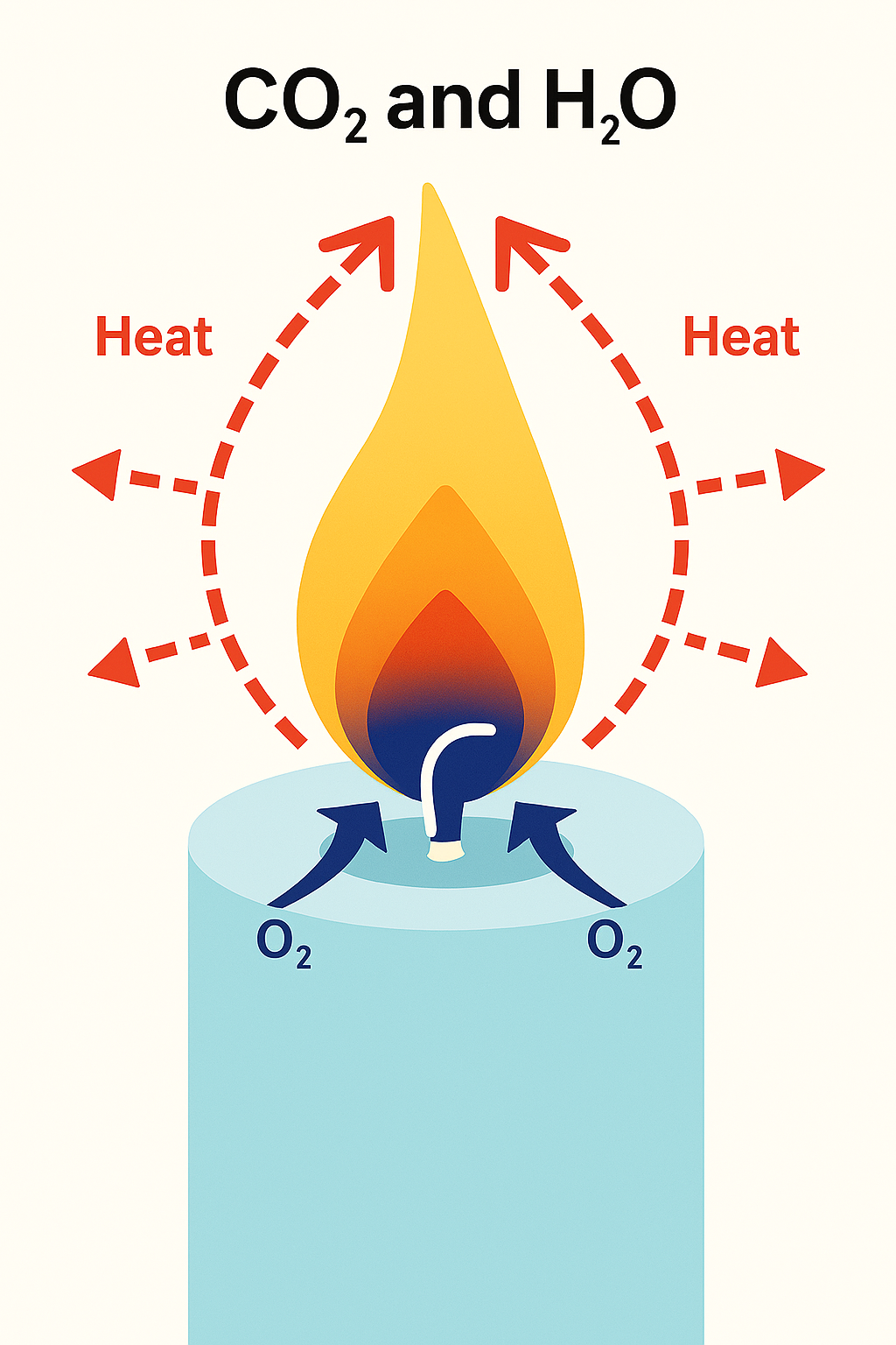 When a candle burns, the flame heats the nearby air and starts to rise. As this warm air moves up, cooler air and oxygen rush in at the bottom of the flame to replace it.