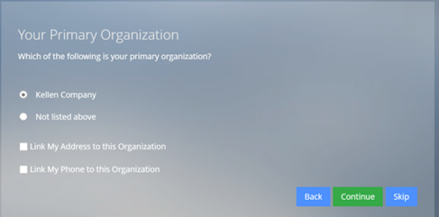 You may choose to use your organization’s address and phone number instead of your own by checking the appropriate boxes. Then select ‘Continue’.